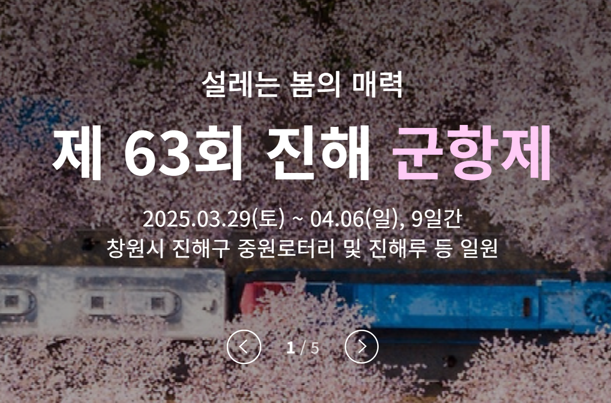 매년 봄, 경남 창원시 진해구에서는 대한민국 최대의 벚꽃 축제인‘진해 군항제’가 개최합니다. 2025년 제63회 진해 군항제에 방문하실 예정이시면 아래의 내용을 참고하셔서 진해의 아름다운 벚꽃을 즐기시길 바랍니다.