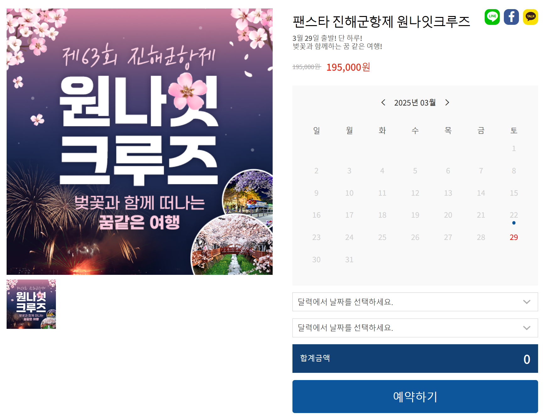 - 숙박형 크루즈 운영 (3월 29일 단하루, 진해 앞바다)