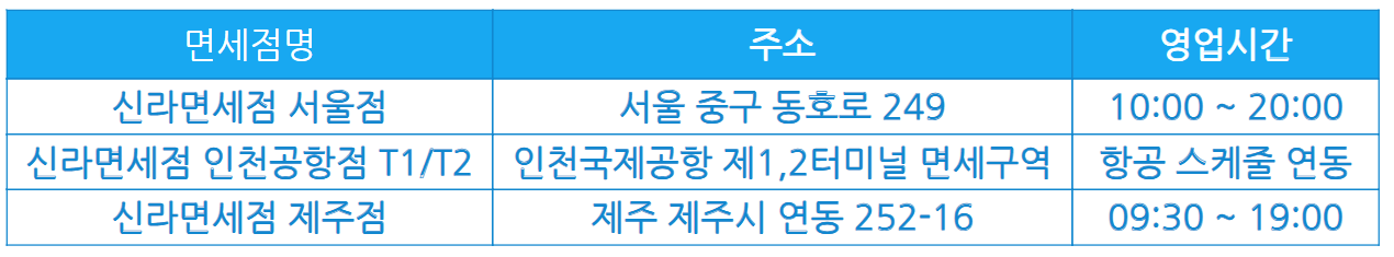 - 장소: 인천, 서울, 부산, 제주 등 전국 14개 면세점